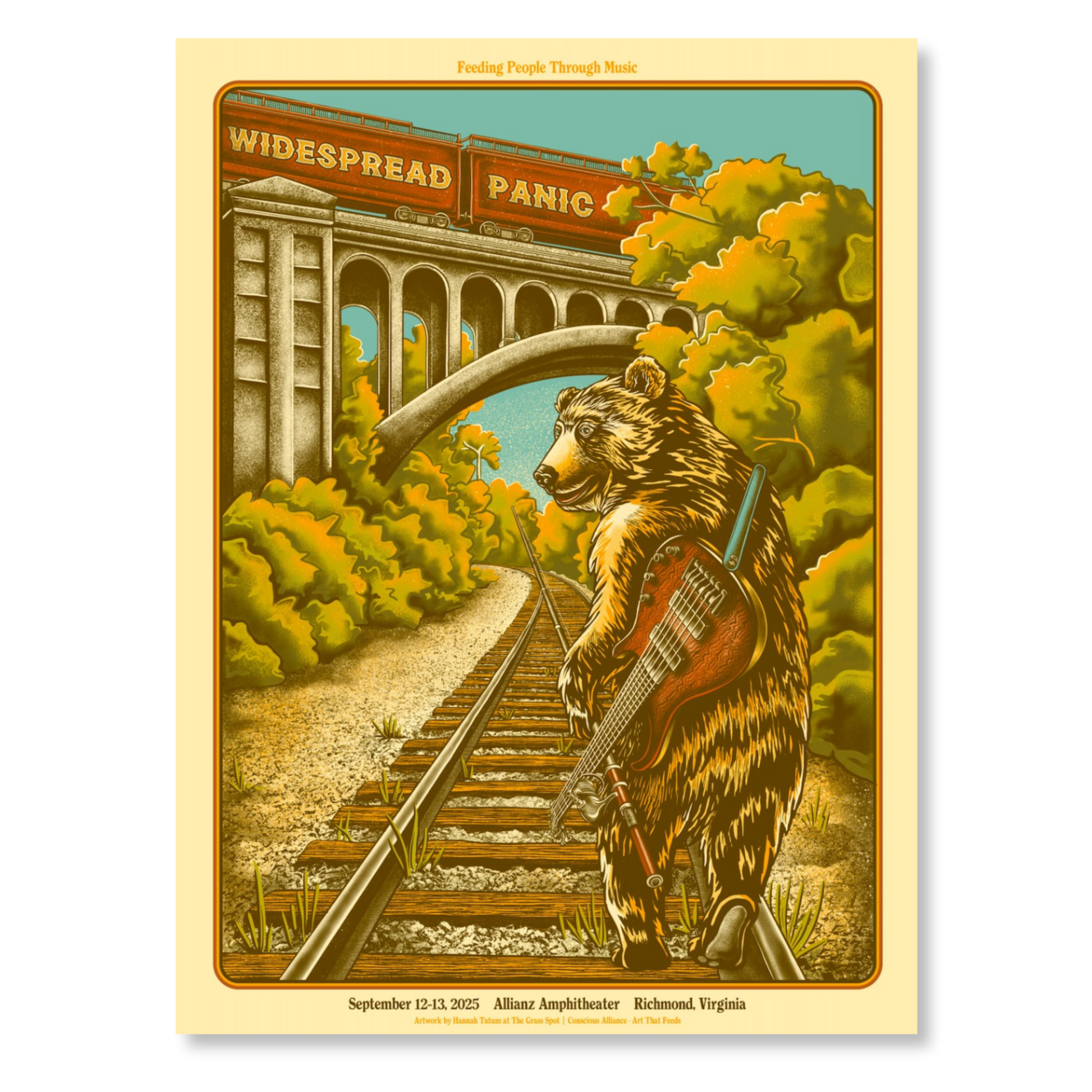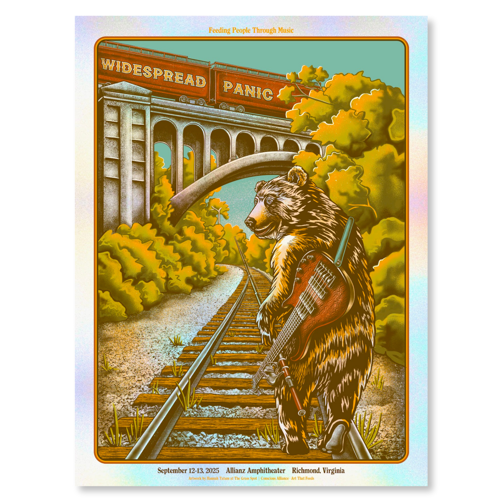 Limited edition 18x24 screen-printed poster from Widespread Panic’s Richmond shows, designed and signed by The Grass Spot's Hannah Tatum Norris.
